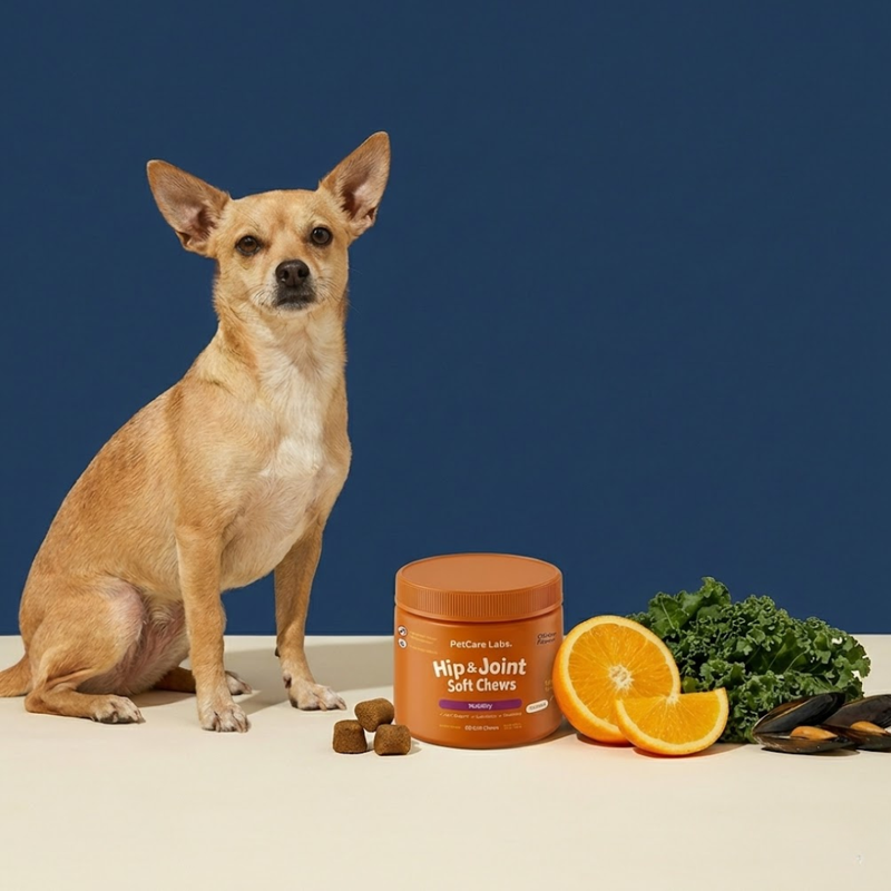 Our Hip & Joint Chews are formulated with a blend of well-researched joint-support ingredients including glucosamine, chondroitin, MSM, turmeric, green-lipped mussel, omega-3 fatty acids, hyaluronic acid, and eggshell membrane. These ingredients work together to help support cartilage health, maintain joint lubrication, and promote comfortable mobility.